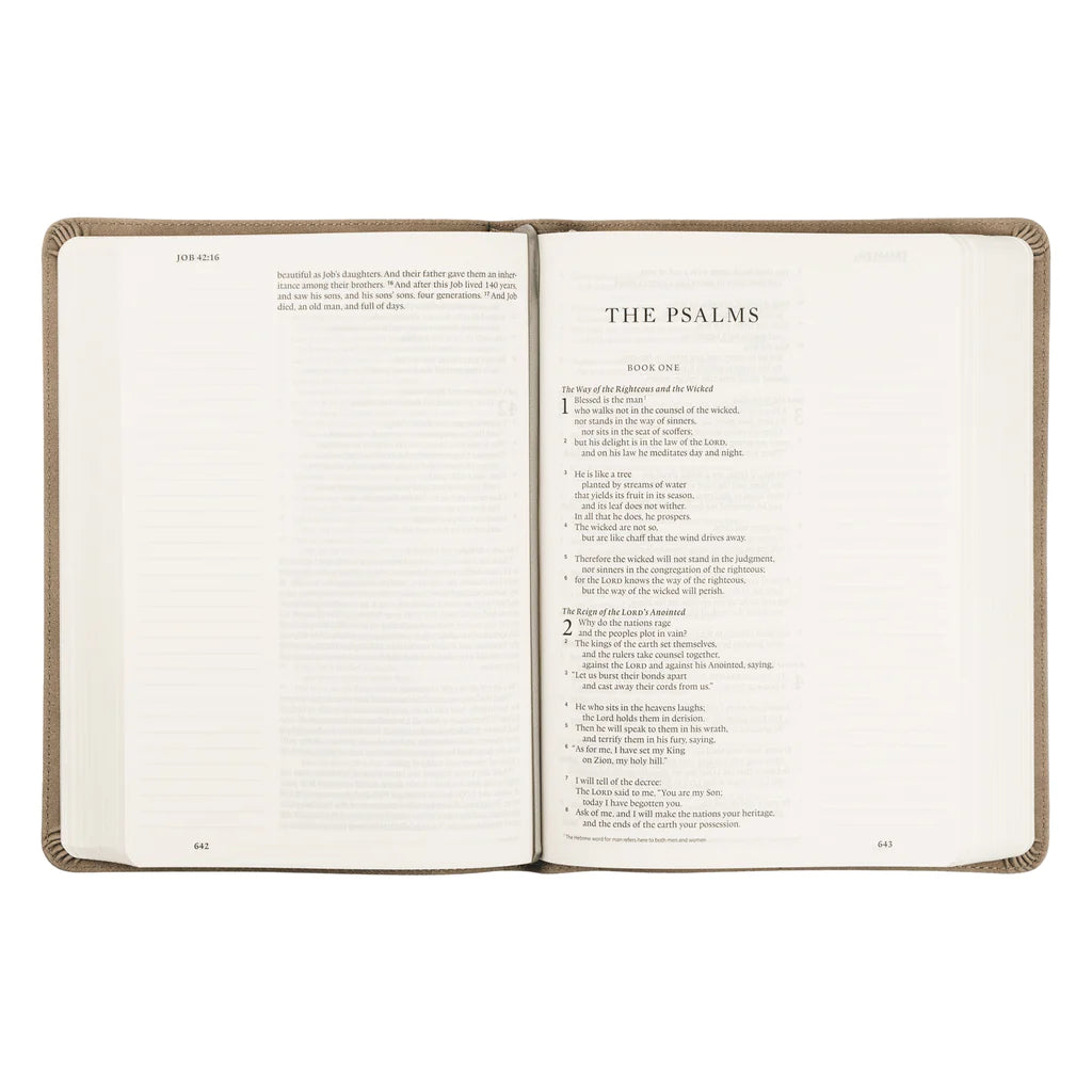 This leather-like Bible was inspired by the beautiful azalea blossoms of Nara, Japan. The cover of this Bible details these easily-recognizable blooms and broad leaves etched into the soft gray cover. Just as these bright, showy azalea blossoms grow in clusters on the branches, the back cover reminds us to trust in the Lord, leaning not on our own understanding but on him, who is our source of life and is himself everything we need. He will make our paths straight if only we acknowledge him (Proverbs 3:5-6). We pray this Nara Bible would be a tool to help you wholly rely upon God’s wisdom, power, and goodness.