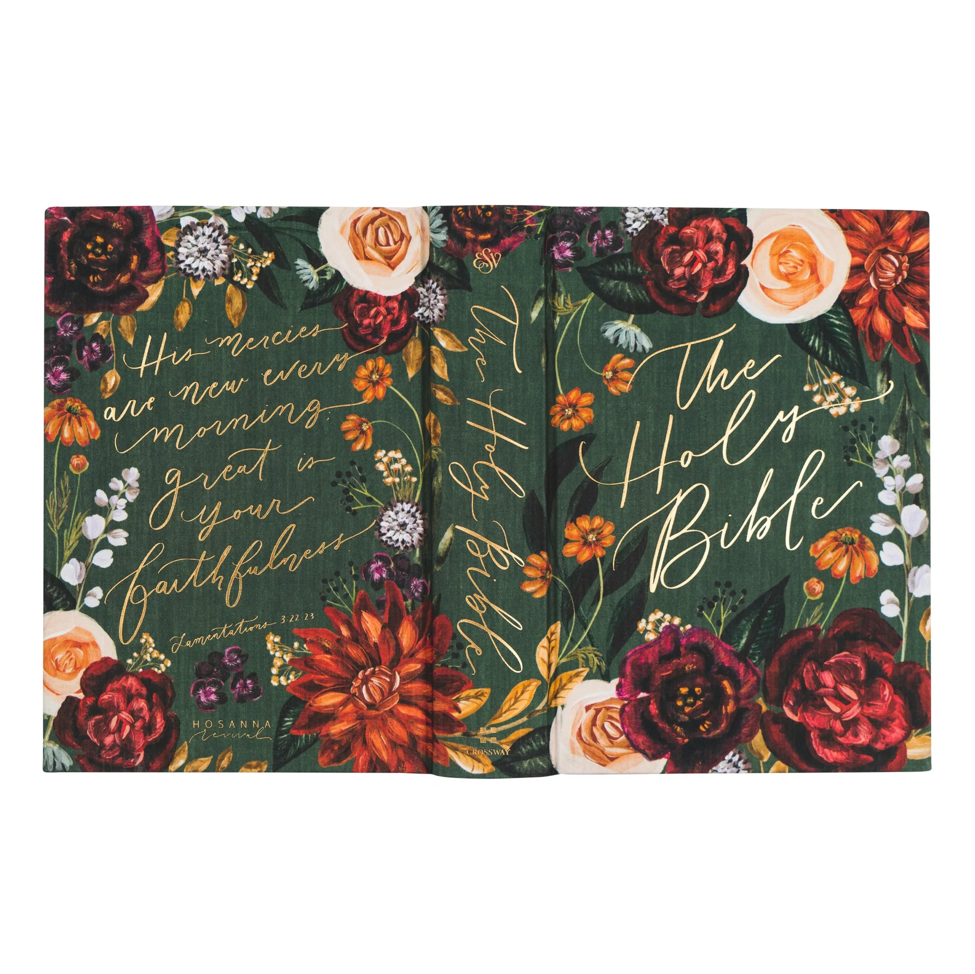 In the fall of 2019, we launched the beautiful Hollis ESV Journaling Bible®, inspired by crisp fall air, warm flower bouquets, and the colors of Hollis, New Hampshire. The big maroon dahlias, blush Juliet garden roses, and other fall wildflowers quickly made this Bible a favorite of so many people. Now, we’ve refreshed this beloved design and brought it back as a large print journaling Bible!