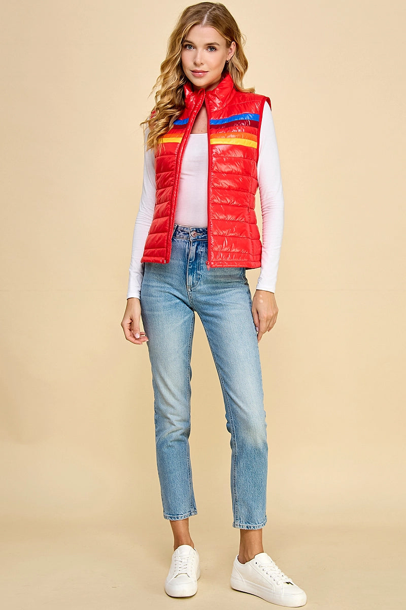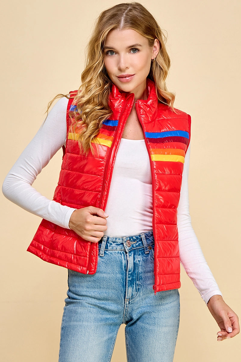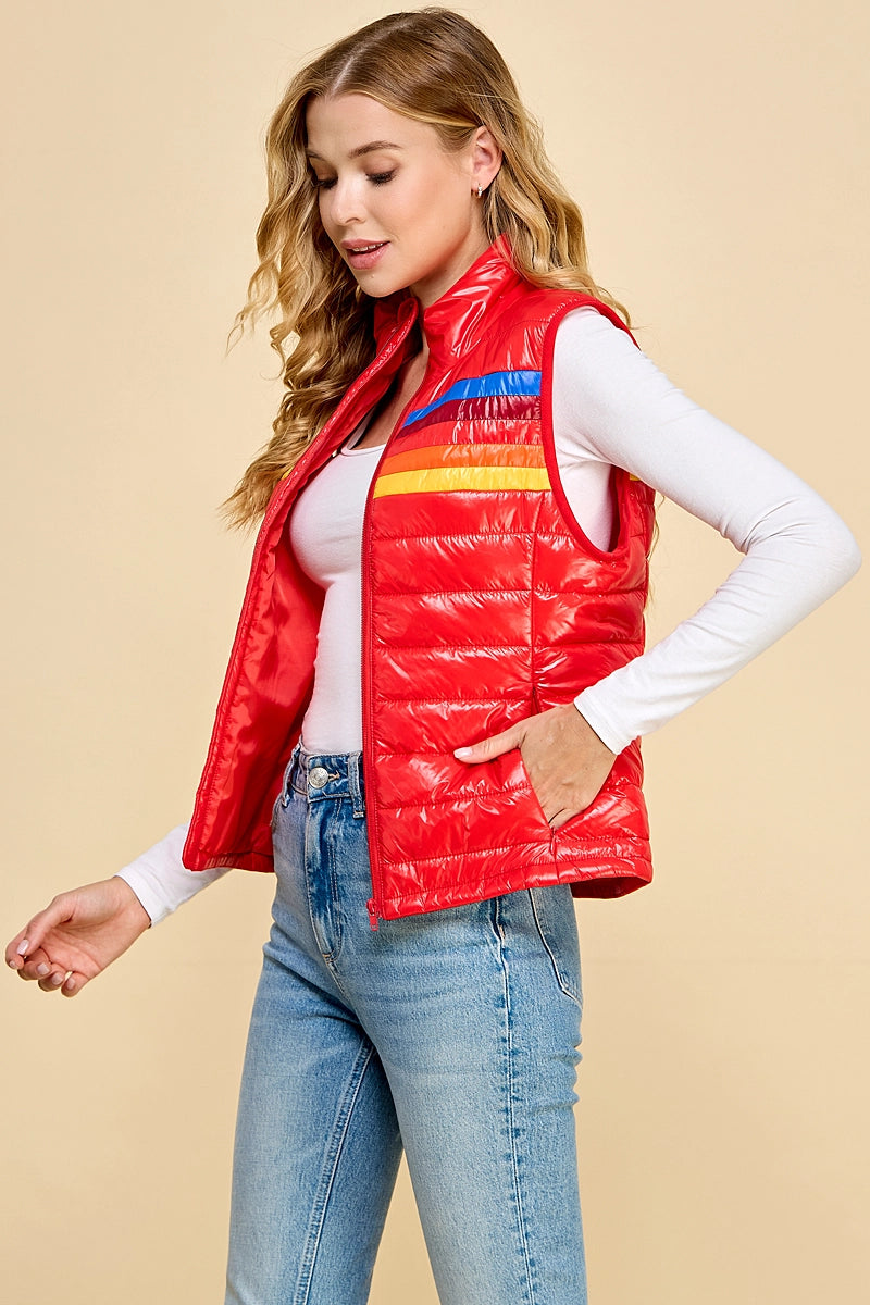-red puffer vest