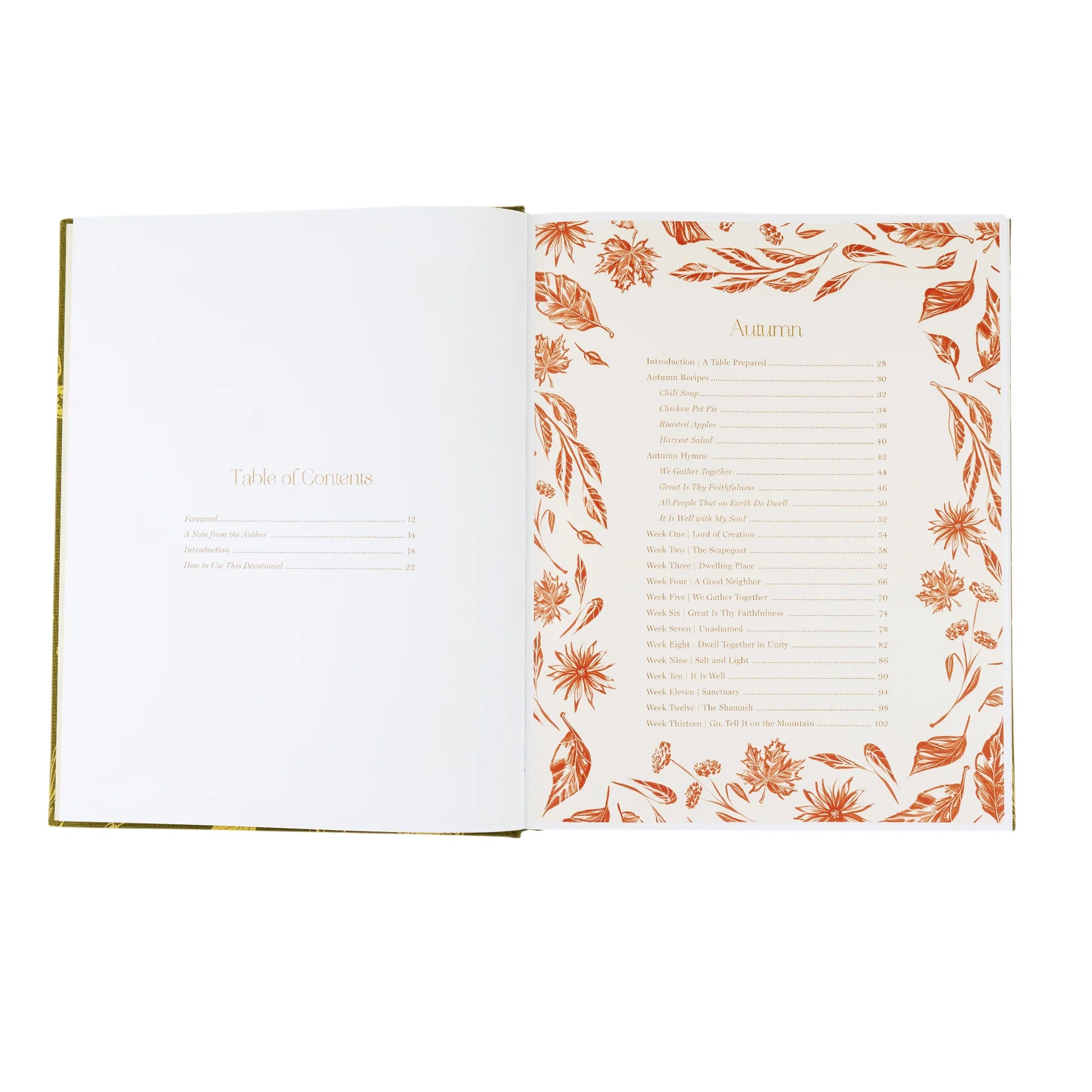 The Everyday Banquet offers families four sections, each dedicated to a season of the year: Autumn, Winter, Spring, and Summer. In each section, you’ll find four recipes that invite the entire family to enjoy preparing meals together, four hymns that provide an opportunity for family worship, and thirteen devotionals that foster meaningful discussions about the Lord, promoting both sharing and listening. Each week will guide the parents to read the Bible to their family and then answer questions together. These conversations are a launching point for diving deep into your own theology with your children. As you gather around the table, this devotional will be an invitation to spend quality time together discussing his ways and his love. As a seasonal devotional, your family will find each 13-week section focuses on the natural ebb and flow of creation, including holidays common to believers and Jewish feasts found in Scripture. Whether you gather weekly with your family already or have not yet established this rhythm, The Everyday Banquet is your guide to doing this with purpose and for his glory!